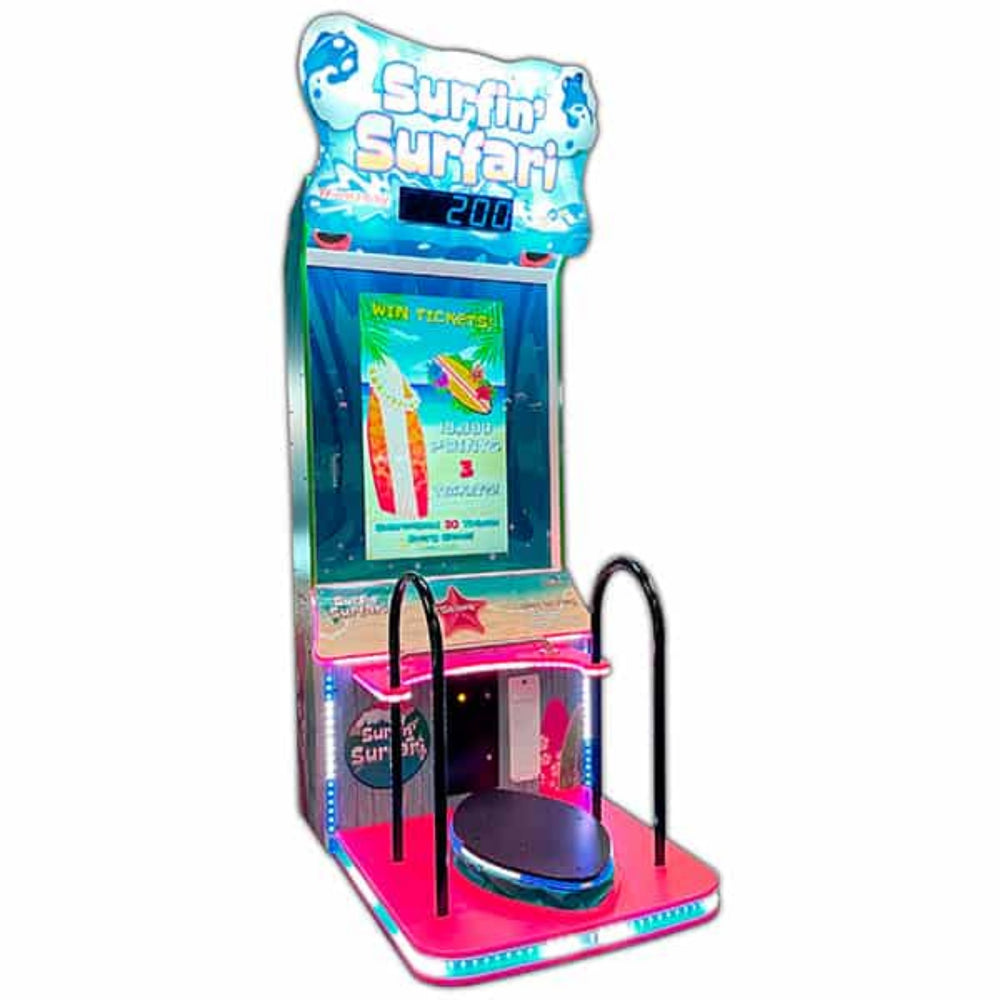 Catch the ultimate wave in Surfin’ Surfari, the thrilling motion-based ticket redemption game that brings the beach to your arcade! Players jump on a full-motion surfboard controller and use their body weight to steer through the surf—dodging sharks, collecting sea creatures, treasure chests, and time bonuses in a bright, vibrant ocean adventure.