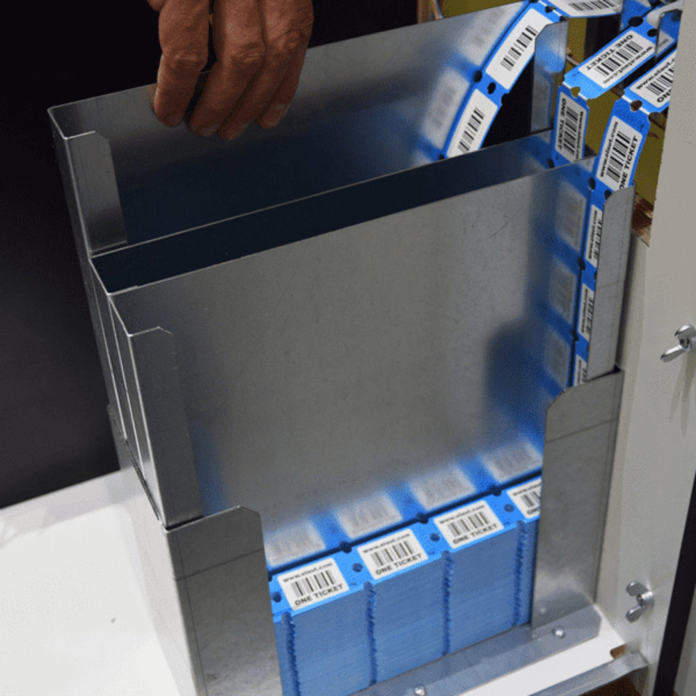 • Triple dispenser with 3 individual ticket stackers holding up to 18,000 tickets