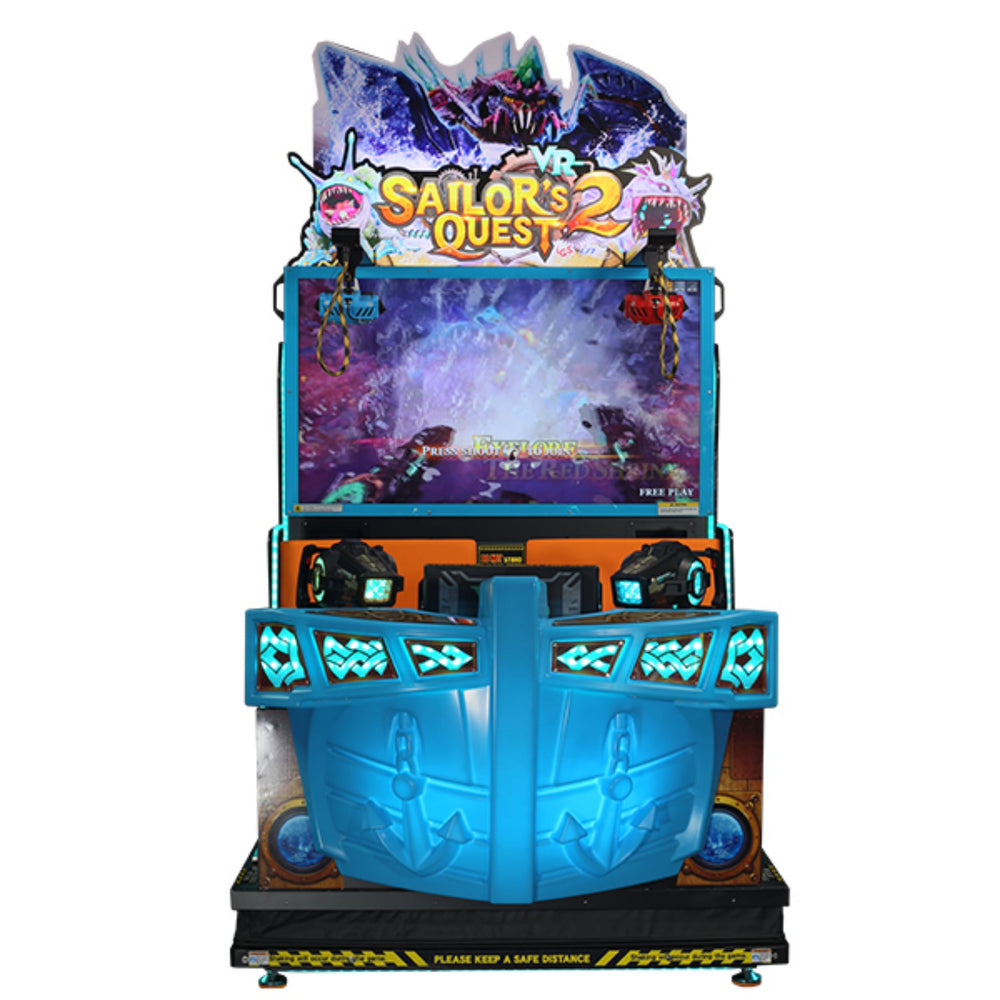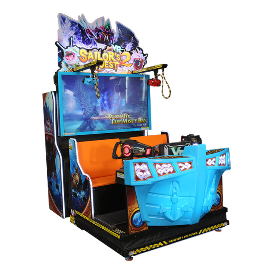 Embark on the high seas in Sailor’s Quest VR 2, an action-packed, 2-player interactive VR experience that combines thrilling gameplay with fully immersive 5D motion and sensory effects. Battle sea monsters, search for hidden treasures, and explore six uniquely themed adventure maps, all from the helm of a boat-shaped, motion-enabled cabinet.