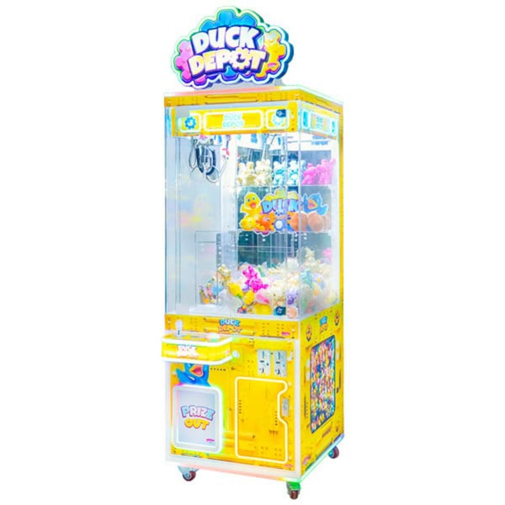 Bring a splash of excitement to your venue with the Duck Depot — a charming single-player claw machine designed to captivate players of all ages. With its bright, colorful design and engaging sound effects, this machine instantly draws attention and invites guests to try their luck at catching an adorable duck prize.